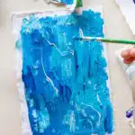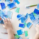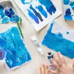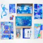 In this art box we look at artists old and new to inspire us to create and experiment with a variety of different mediums… all in blue! We look at the colour blue in an abstract way and make textured paintings and build shape collages; we look at blue waters and learn how to make pool patterns as well as wave dioramas; we think of blue feelings and paint blue portraits and glue together blue dancers! Finally we look at how artists use the colour blue in interiors, and design our own painted blue chair!