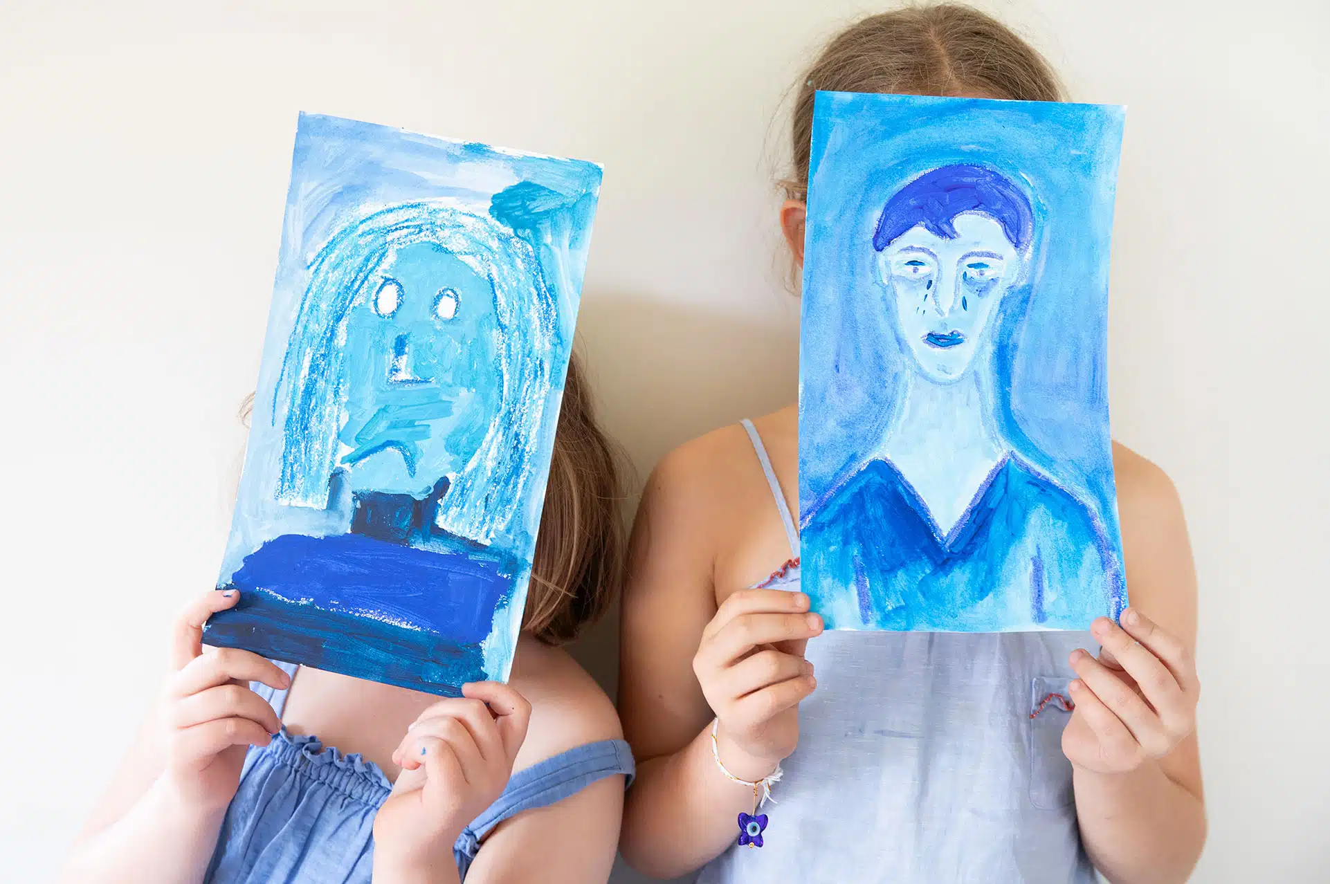 In this art box we look at artists old and new to inspire us to create and experiment with a variety of different mediums… all in blue! We look at the colour blue in an abstract way and make textured paintings and build shape collages; we look at blue waters and learn how to make pool patterns as well as wave dioramas; we think of blue feelings and paint blue portraits and glue together blue dancers! Finally we look at how artists use the colour blue in interiors, and design our own painted blue chair!